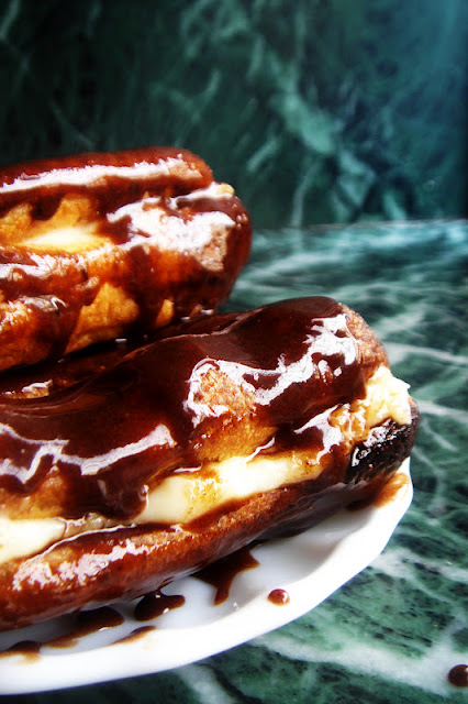 Just like that I had the craving for a Chocolate Eclair, since I was yearning to cook after recovering from a Viral Fever and having bland food (well everything tasted bland to me anyway) for 10 days. It did not seem all that difficult and I had everything I needed at hand, so there I began. Little did I know that it was a gentle push to send me tumbling downhill into a puddle of cheap cocoa icing.