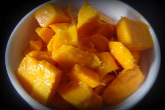 Make two of these and then add half of the mango dices from the refrigerator.
