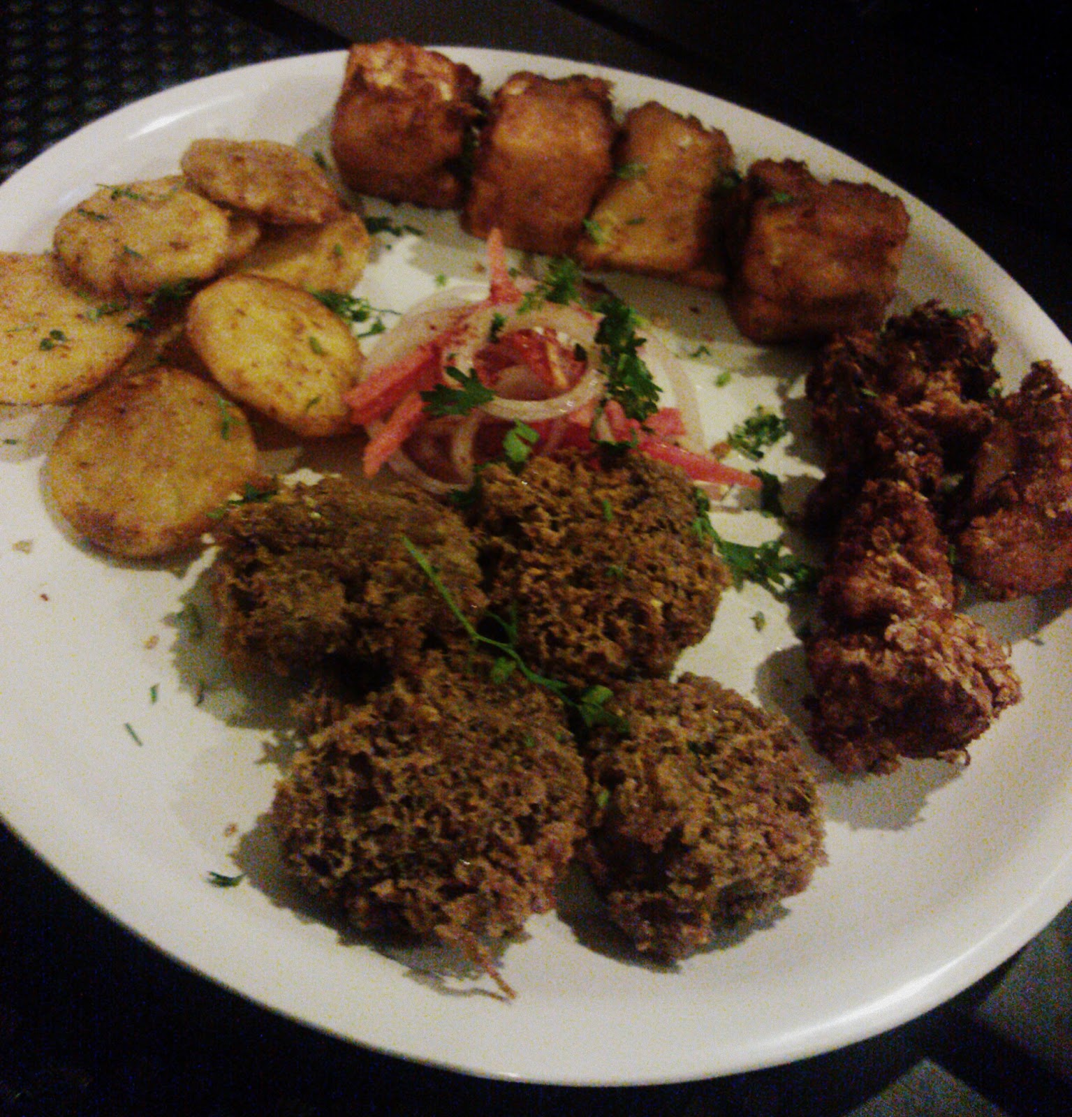 We started off with Paneer Lahsuniya, Aloo Tuk, Crispy Chicken and Mutton Tikki. The Mutton Tikki was nice and the meat was not rubbery, but the flavor wasn’t extraordinary. The Crispy Chicken could give KFC a run for its money, the Aloo Tuk reminded me of my ex neighbor lady who used to always send us a plate filled with those whenever she made them at home and the Paneer Lahsuniya was absolutely fantastic! Melt in the mouth Paneer Chunks with a Ginger and Garlic filling sandwiched in between them, dipped in thin batter and fried to crispy perfection. It was heavenly.