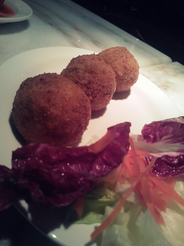 Next we tried the Palle Di Riso, which are crispy Rice balls stuffed with Parmesan and Salami. The rice used for stuffing is Arborio Rice, and the cheese makes the inside soft and gooey while the Salami keeps them moist while they are coated with bread crumbs and deep fried to perfection.