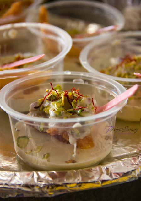 Garnish with the remaining nuts, Saffron strands and rose petals.