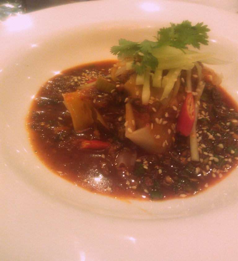 For the Vegetarian appetizers, we first had the Vegetable Wonton with Sichuan Pepper, which was surprisingly light. The Wontons were soft and smooth, and the sauce was mildly sweet with just the right amount of hotness from the sliced Red Chilies, with an aftertaste of Sesame.