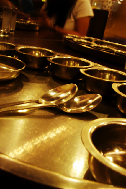 Khandaani Rajdhani is all about hospitality. The kind of hospitality that is very close to a thin line which when crossed gets down right annoying. The Rajasthani hospitality is all about getting their guest so stuffed with food that they would be unable to move. But the folks here at Rajdhani managed to play their part well, where we felt welcome and at home the whole time. They even have a special sign language just to communicate amongst each other without being a hindrance to the customers.